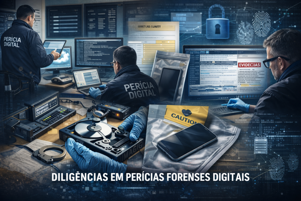 A perícia forense digital tornou-se indispensável em investigações envolvendo computadores, dispositivos móveis, redes, nuvem e documentos eletrônicos. Nesse contexto, as diligências representam ações práticas realizadas pelo perito ou perito assistente para localizar, identificar, coletar e analisar evidências digitais.